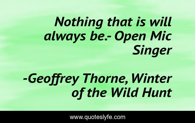 This page presents the quote "Nothing that is will always be.- Open Mic Singer". Author of this quote is Geoffrey Thorne, Winter of the Wild Hunt. This quote is about urban-fantasy, dark-fantasy, paranormal-romance,.