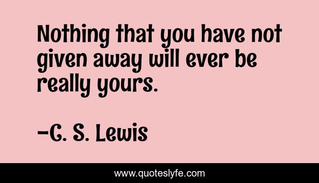 "C. S. Lewis Quotes." Quoteslyfe.com, 2025. Sun. 07 Dec. 2025. <https://www.quoteslyfe.com/quote/Nothing-that-you-have-not-given-away-322451>.