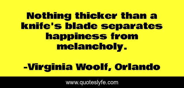 This page presents the quote "Nothing thicker than a knife's blade separates happiness from melancholy.". Author of this quote is Virginia Woolf, Orlando. .