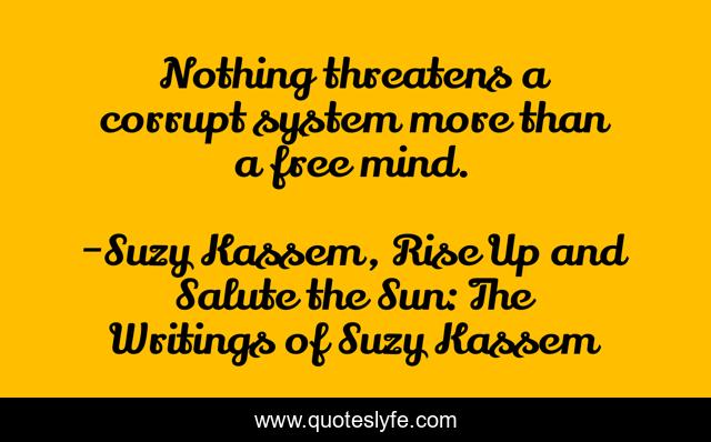 "Suzy Kassem, Rise Up and Salute the Sun: The Writings of Suzy Kassem Quotes." Quoteslyfe.com, 2025. Sat. 06 Dec. 2025. <https://www.quoteslyfe.com/quote/Nothing-threatens-a-corrupt-system-more-than-232028>.