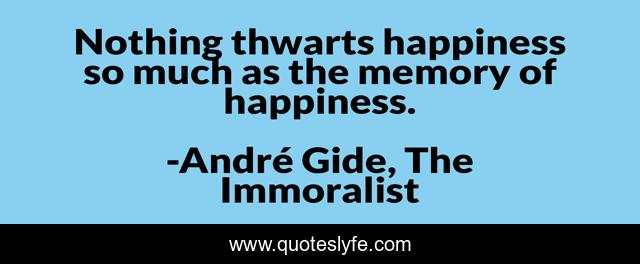 This page presents the quote "Nothing thwarts happiness so much as the memory of happiness.". Author of this quote is André Gide, The Immoralist. This quote is about happiness, memory,.