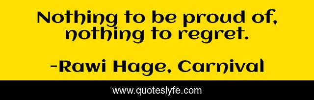 This page presents the quote "Nothing to be proud of, nothing to regret.". Author of this quote is Rawi Hage, Carnival. This quote is about proud, regret,.