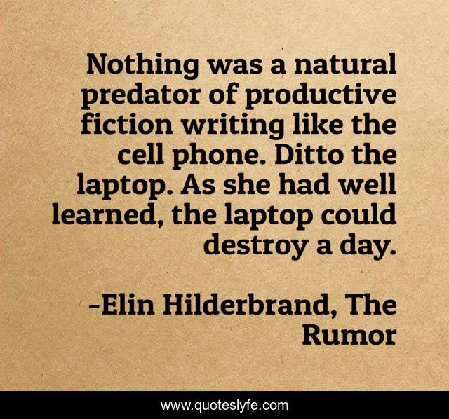 "Elin Hilderbrand, The Rumor Quotes." Quoteslyfe.com, 2025. Mon. 08 Dec. 2025. <https://www.quoteslyfe.com/quote/Nothing-was-a-natural-predator-of-productive-100829>.