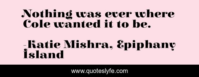 "Katie Mishra, Epiphany Island Quotes." Quoteslyfe.com, 2025. Fri. 05 Dec. 2025. <https://www.quoteslyfe.com/quote/Nothing-was-ever-where-Cole-wanted-it-41539>.
