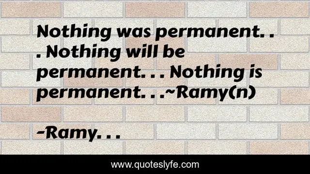 "Ramy. . . Quotes." Quoteslyfe.com, 2025. Fri. 05 Dec. 2025. <https://www.quoteslyfe.com/quote/Nothing-was-permanent-Nothing-will-be-permanent-139197>.