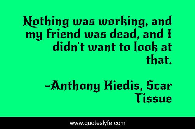This page presents the quote "Nothing was working, and my friend was dead, and I didn't want to look at that.". Author of this quote is Anthony Kiedis, Scar Tissue. This quote is about death, death-of-a-friend,.