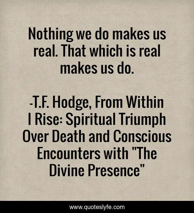 "T.F. Hodge, From Within I Rise: Spiritual Triumph Over Death and Conscious Encounters with "The Divine Presence" Quotes." Quoteslyfe.com, 2025. Fri. 05 Dec. 2025. <https://www.quoteslyfe.com/quote/Nothing-we-do-makes-us-real-That-94240>.