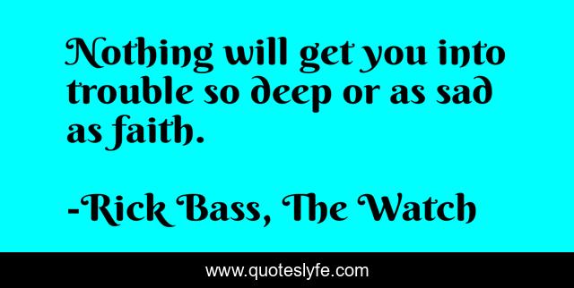 This page presents the quote "Nothing will get you into trouble so deep or as sad as faith.". Author of this quote is Rick Bass, The Watch. This quote is about faith, juggernaut-short-story,.