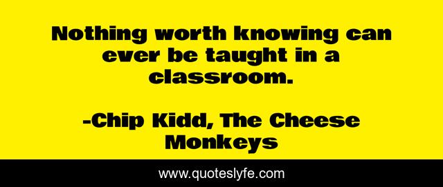 This page presents the quote "Nothing worth knowing can ever be taught in a classroom.". Author of this quote is Chip Kidd, The Cheese Monkeys. This quote is about life, classes, university, learning,.
