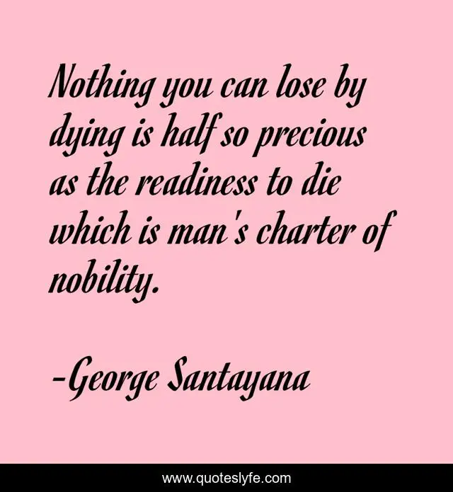 This page presents the quote "Nothing you can lose by dying is half so precious as the readiness to die which is man's charter of nobility.". Author of this quote is George Santayana. This quote is about death, dying,.