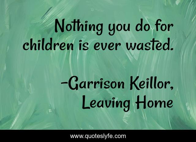 This page presents the quote "Nothing you do for children is ever wasted.". Author of this quote is Garrison Keillor, Leaving Home. .