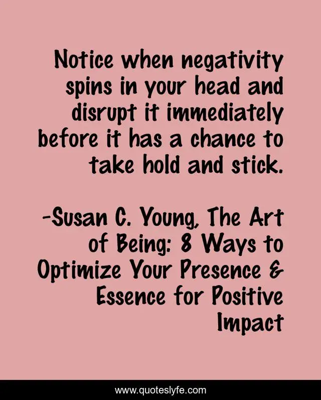 "Susan C. Young, The Art of Being: 8 Ways to Optimize Your Presence & Essence for Positive Impact Quotes." Quoteslyfe.com, 2025. Fri. 05 Dec. 2025. <https://www.quoteslyfe.com/quote/Notice-when-negativity-spins-in-your-head-199388>.