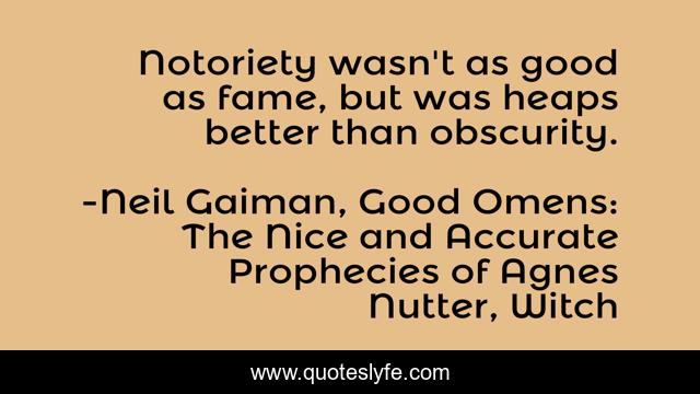 "Neil Gaiman, Good Omens: The Nice and Accurate Prophecies of Agnes Nutter, Witch Quotes." Quoteslyfe.com, 2025. Fri. 05 Dec. 2025. <https://www.quoteslyfe.com/quote/Notoriety-wasn-t-as-good-as-fame-245190>.