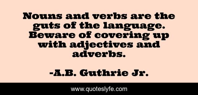 "A.B. Guthrie Jr. Quotes." Quoteslyfe.com, 2025. Fri. 05 Dec. 2025. <https://www.quoteslyfe.com/quote/Nouns-and-verbs-are-the-guts-of-226954>.