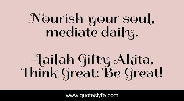"Lailah Gifty Akita, Think Great: Be Great! Quotes." Quoteslyfe.com, 2025. Tue. 09 Dec. 2025. <https://www.quoteslyfe.com/quote/Nourish-your-soul-mediate-daily-121318>.