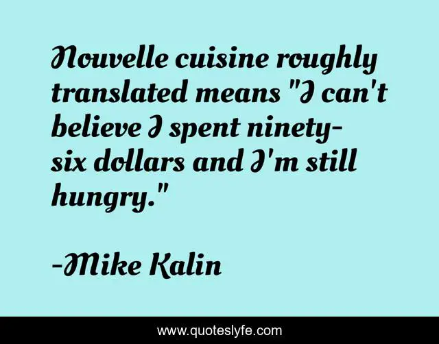 "Mike Kalin Quotes." Quoteslyfe.com, 2025. Tue. 09 Dec. 2025. <https://www.quoteslyfe.com/quote/Nouvelle-cuisine-roughly-translated-means-I-can-277370>.