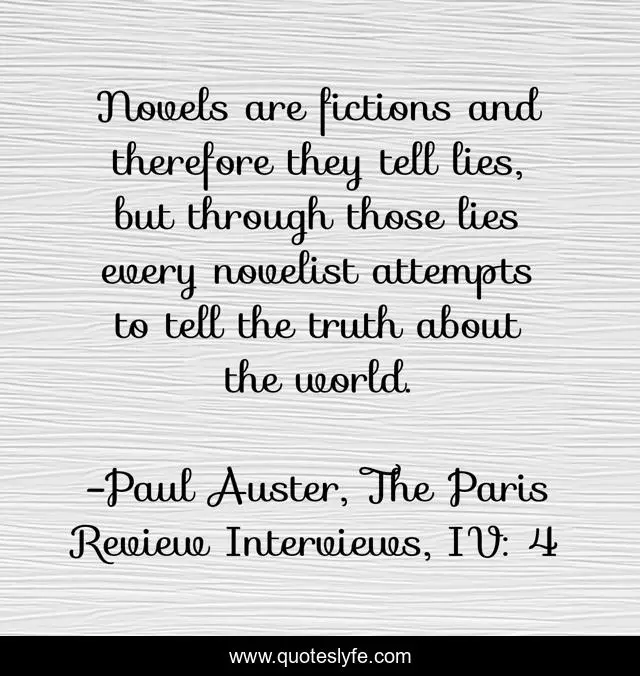 "Paul Auster, The Paris Review Interviews, IV: 4 Quotes." Quoteslyfe.com, 2025. Mon. 08 Dec. 2025. <https://www.quoteslyfe.com/quote/Novels-are-fictions-and-therefore-they-tell-101019>.