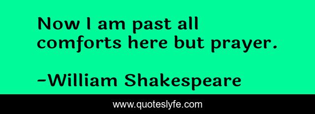 This page presents the quote "Now I am past all comforts here but prayer.". Author of this quote is William Shakespeare. .