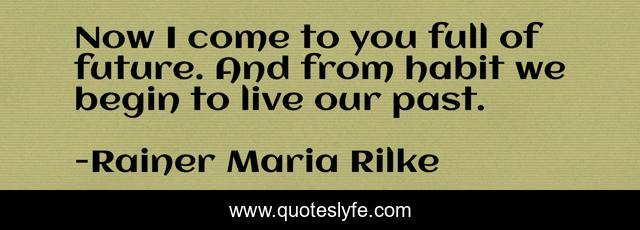 This page presents the quote "Now I come to you full of future. And from habit we begin to live our past.". Author of this quote is Rainer Maria Rilke. This quote is about past, future,.