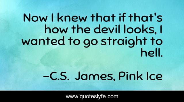 This page presents the quote "Now I knew that if that's how the devil looks, I wanted to go straight to hell.". Author of this quote is C.S. James, Pink Ice. This quote is about romance-love, romance-novels,.