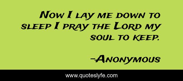 This page presents the quote "Now I lay me down to sleep I pray the Lord my soul to keep.". Author of this quote is Anonymous. .