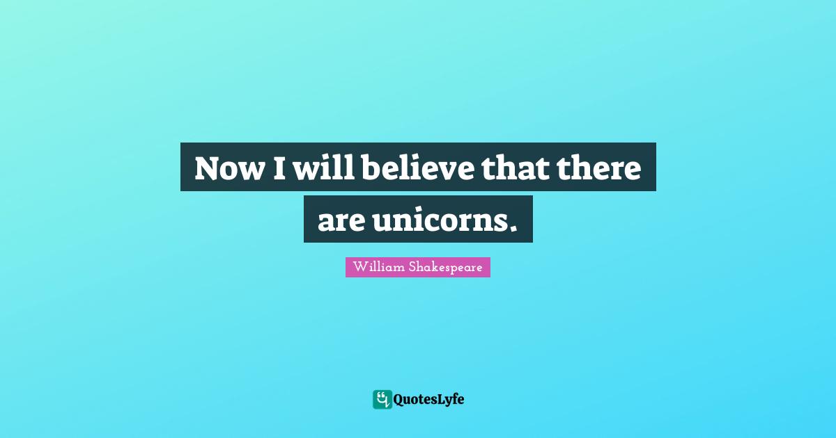 This page presents the quote "Now I will believe that there are unicorns.". Author of this quote is William Shakespeare. This quote is about unicorn, believe, tempest,.