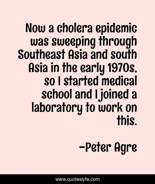 "Peter Agre Quotes." Quoteslyfe.com, 2025. Mon. 08 Dec. 2025. <https://www.quoteslyfe.com/quote/Now-a-cholera-epidemic-was-sweeping-through-309699>.