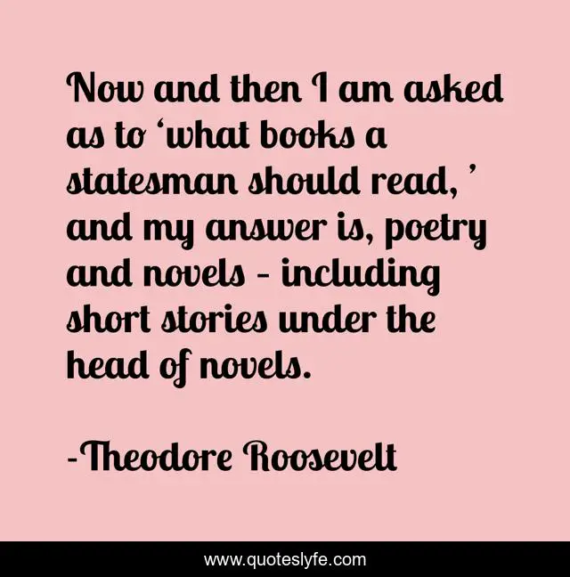 Now and then I am asked as to ‘what books a statesman should read, ’ and my answer is, poetry and novels – including short stories under the head of novels.