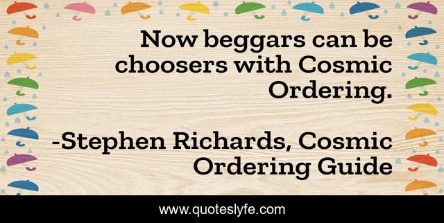 "Stephen Richards, Cosmic Ordering Guide Quotes." Quoteslyfe.com, 2025. Sat. 06 Dec. 2025. <https://www.quoteslyfe.com/quote/Now-beggars-can-be-choosers-with-Cosmic-17013>.