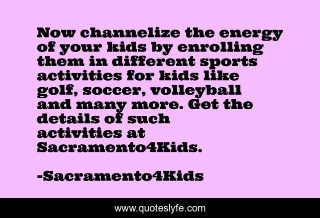 This page presents the quote "Now channelize the energy of your kids by enrolling them in different sports activities for kids like golf, soccer, volleyball and many more. Get the details of such activities at Sacramento4Kids.". Author of this quote is Sacramento4Kids. This quote is about activities, kids, sports,.