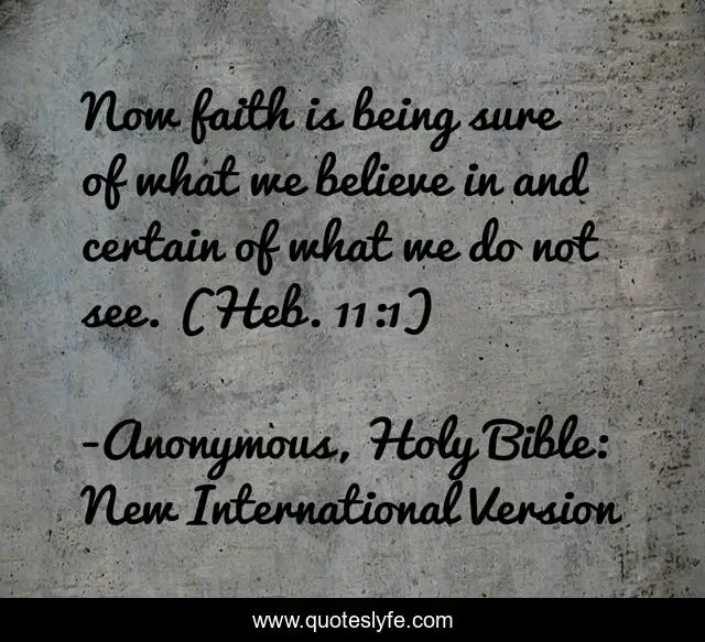 "Anonymous, Holy Bible: New International Version Quotes." Quoteslyfe.com, 2025. Fri. 05 Dec. 2025. <https://www.quoteslyfe.com/quote/Now-faith-is-being-sure-of-what-30004>.