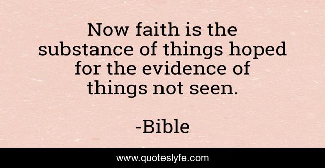 This page presents the quote "Now faith is the substance of things hoped for the evidence of things not seen.". Author of this quote is Bible. This quote is about belief, conviction,.