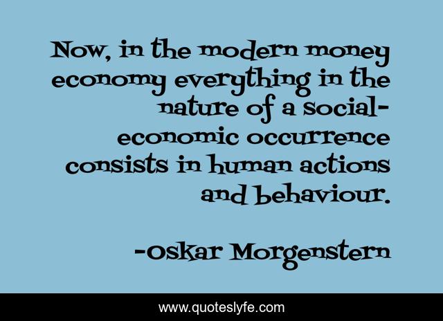 This page presents the quote "Now, in the modern money economy everything in the nature of a social-economic occurrence consists in human actions and behaviour.". Author of this quote is Oskar Morgenstern. This quote is about economics, human-action, economy,.