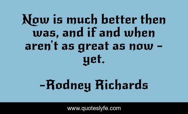 "Rodney Richards Quotes." Quoteslyfe.com, 2025. Fri. 05 Dec. 2025. <https://www.quoteslyfe.com/quote/Now-is-much-better-then-was-and-110509>.