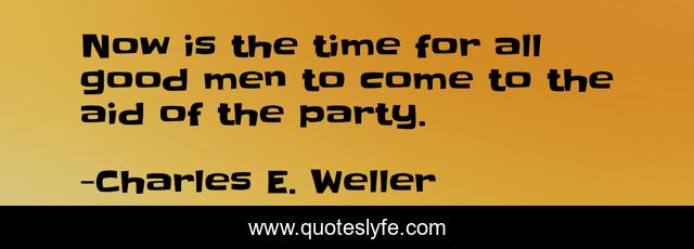 This page presents the quote "Now is the time for all good men to come to the aid of the party.". Author of this quote is Charles E. Weller. .