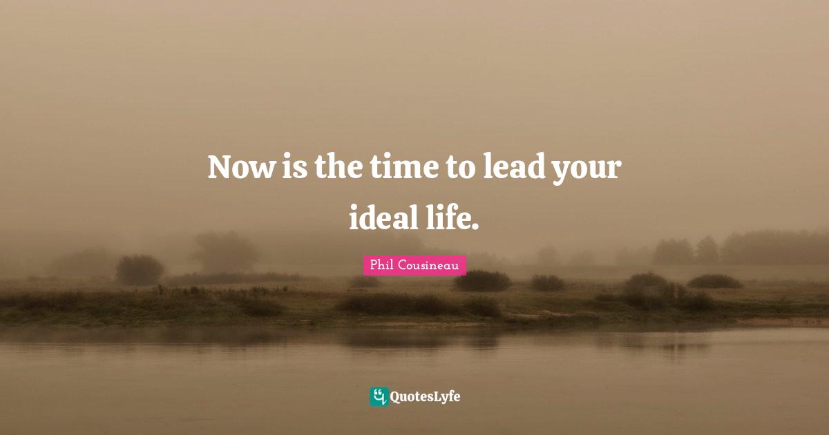 This page presents the quote "Now is the time to lead your ideal life.". Author of this quote is Phil Cousineau. This quote is about ideal life, time, ideals,.