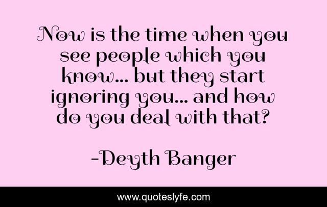 This page presents the quote "Now is the time when you see people which you know... but they start ignoring you... and how do you deal with that?". Author of this quote is Deyth Banger. This quote is about start, ignoring,.