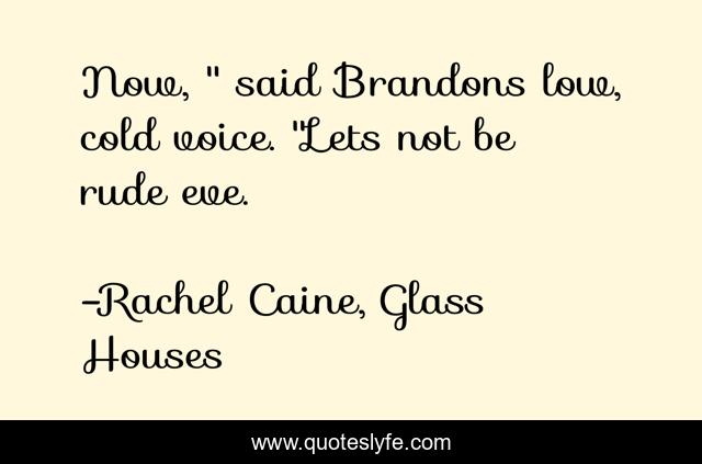 "Rachel Caine, Glass Houses Quotes." Quoteslyfe.com, 2025. Sat. 06 Dec. 2025. <https://www.quoteslyfe.com/quote/Now-said-Brandons-low-cold-voice-Lets-17897>.