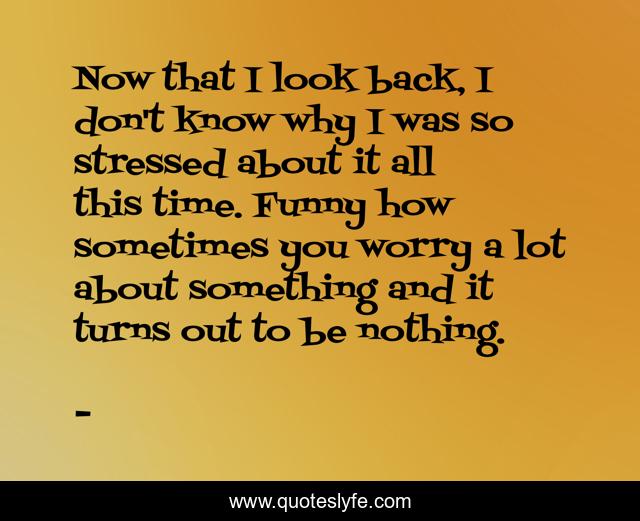 This page presents the quote "Now that I look back, I don't know why I was so stressed about it all this time. Funny how sometimes you worry a lot about something and it turns out to be nothing.". Author of this quote is . This quote is about worry-motivational, stress, worrying-over-nothing,.