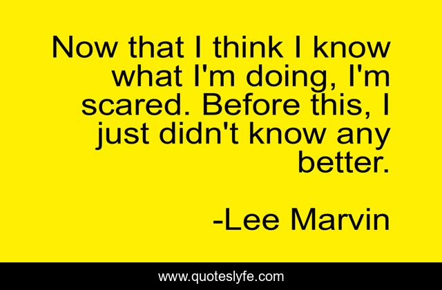 This page presents the quote "Now that I think I know what I'm doing, I'm scared. Before this, I just didn't know any better.". Author of this quote is Lee Marvin. This quote is about acting, actors, experience, lee-marvin,.