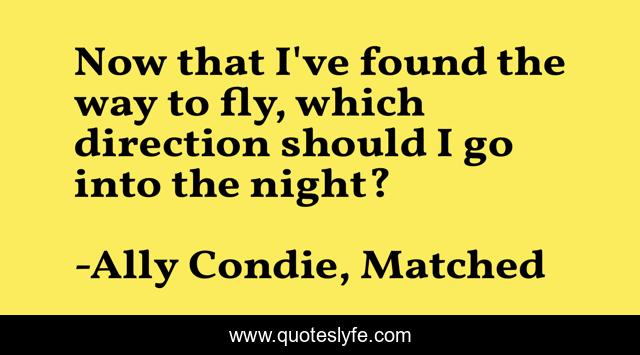 This page presents the quote "Now that I've found the way to fly, which direction should I go into the night?". Author of this quote is Ally Condie, Matched. .