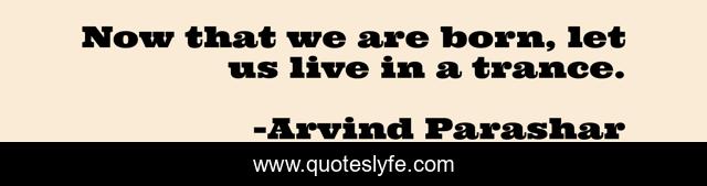 This page presents the quote "Now that we are born, let us live in a trance.". Author of this quote is Arvind Parashar. This quote is about life-philosophy, life, inspirational, enthusiasm,.