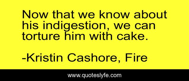 This page presents the quote "Now that we know about his indigestion, we can torture him with cake.". Author of this quote is Kristin Cashore, Fire. This quote is about cake, food,.