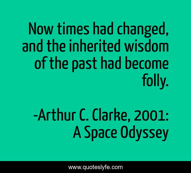 This page presents the quote "Now times had changed, and the inherited wisdom of the past had become folly.". Author of this quote is Arthur C. Clarke, 2001: A Space Odyssey. .