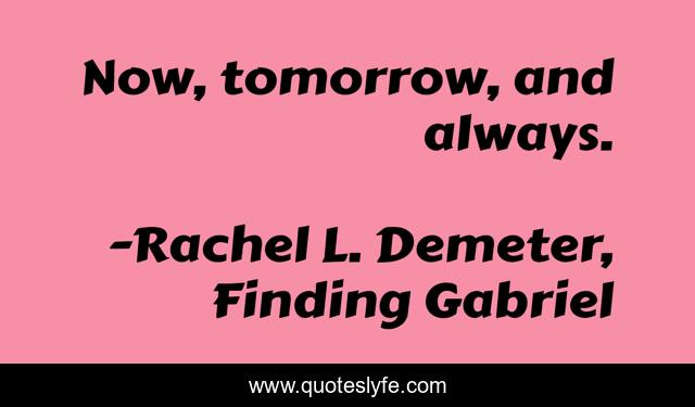 "Rachel L. Demeter, Finding Gabriel Quotes." Quoteslyfe.com, 2025. Sun. 07 Dec. 2025. <https://www.quoteslyfe.com/quote/Now-tomorrow-and-always-213710>.