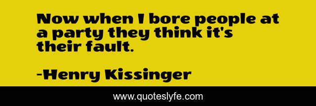 This page presents the quote "Now when I bore people at a party they think it's their fault.". Author of this quote is Henry Kissinger. This quote is about celebrities, fame,.