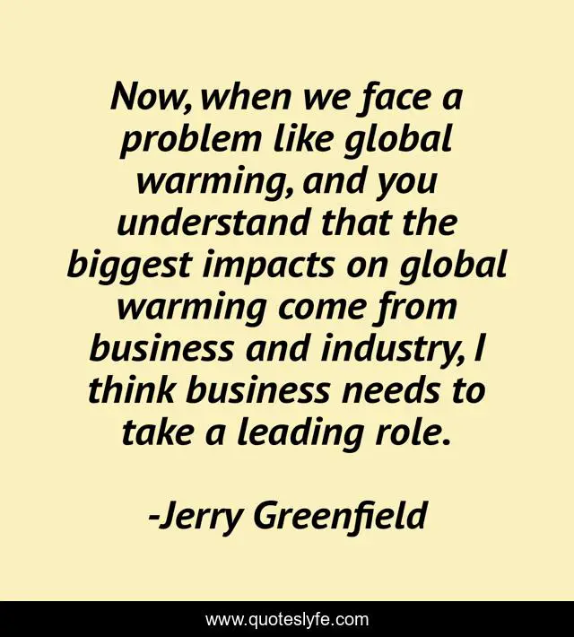 This page presents the quote "Now, when we face a problem like global warming, and you understand that the biggest impacts on global warming come from business and industry, I think business needs to take a leading role.". Author of this quote is Jerry Greenfield. This quote is about problem, think,.