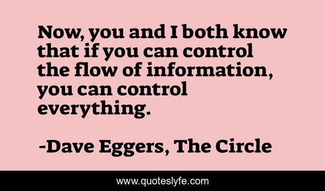 This page presents the quote "Now, you and I both know that if you can control the flow of information, you can control everything.". Author of this quote is Dave Eggers, The Circle. This quote is about control, information,.