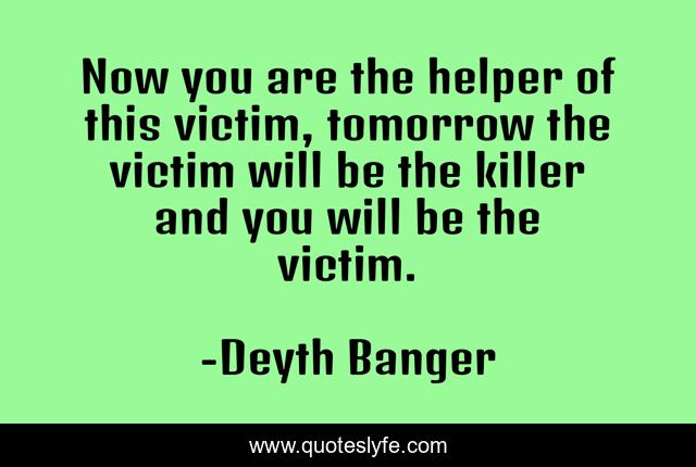 This page presents the quote "Now you are the helper of this victim, tomorrow the victim will be the killer and you will be the victim.". Author of this quote is Deyth Banger. This quote is about now, victim, helper, tomorrow,.