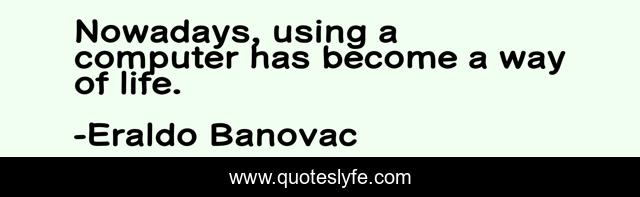 This page presents the quote "Nowadays, using a computer has become a way of life.". Author of this quote is Eraldo Banovac. This quote is about computers-and-humanity, life-philosophy, life, computer, sociology,.
